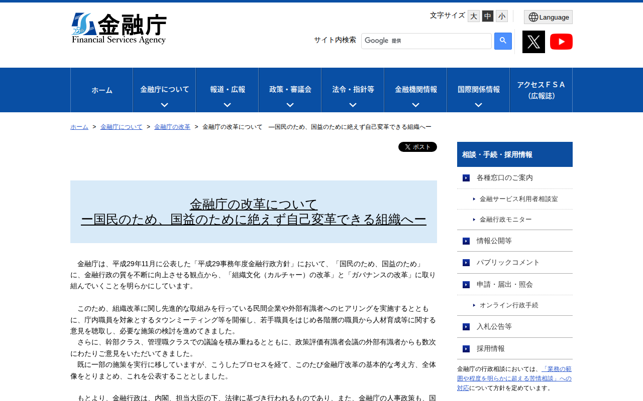 www.fsa.go.jp/common/about/kaikaku.htmlのウェブアーカイブ(魚拓)です。 元のページが削除されても、保存されたスクリーンショットとHTMLで内容を確認できます。