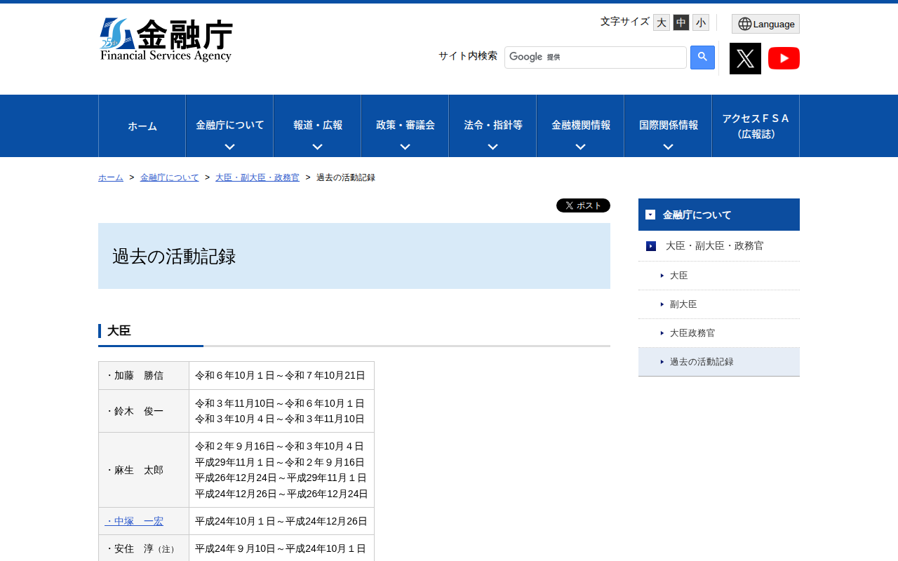 www.fsa.go.jp/common/about/profile/past.htmlのウェブアーカイブ(魚拓)です。 元のページが削除されても、保存されたスクリーンショットとHTMLで内容を確認できます。