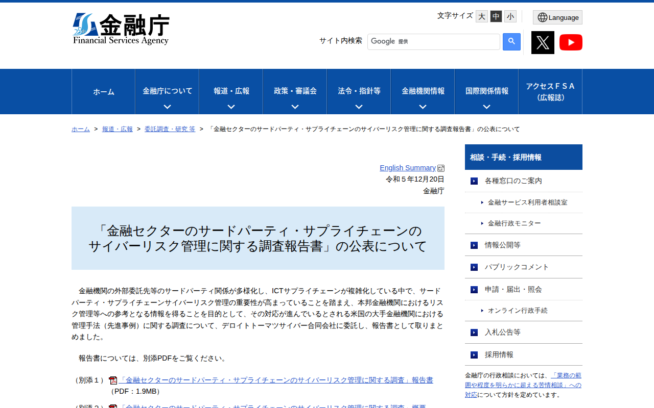 www.fsa.go.jp/common/about/research/20231220/20231220.htmlのウェブアーカイブ(魚拓)です。 元のページが削除されても、保存されたスクリーンショットとHTMLで内容を確認できます。