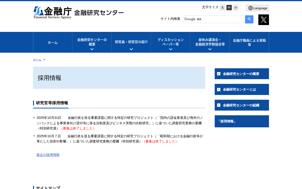 www.fsa.go.jp/frtc/saiyo/saiyojoho.html