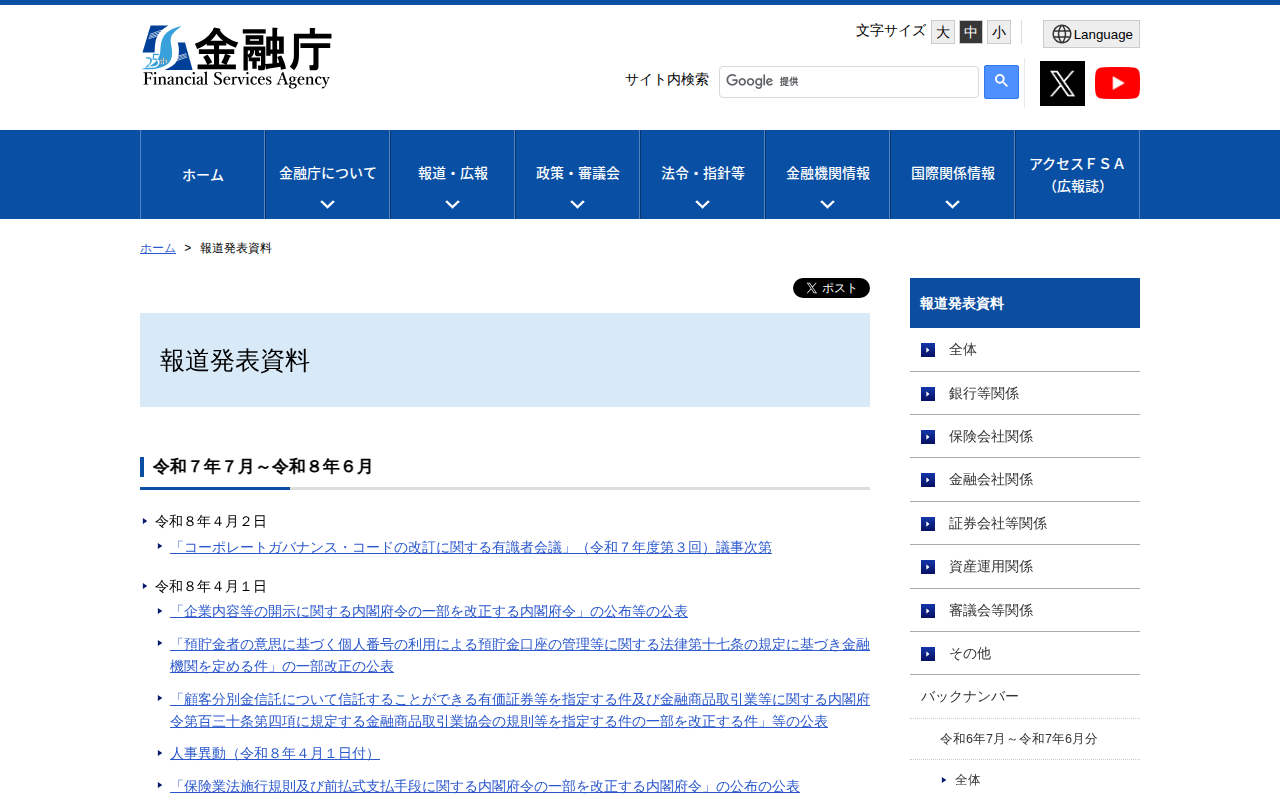 www.fsa.go.jp/newsのウェブアーカイブ(魚拓)です。 元のページが削除されても、保存されたスクリーンショットとHTMLで内容を確認できます。