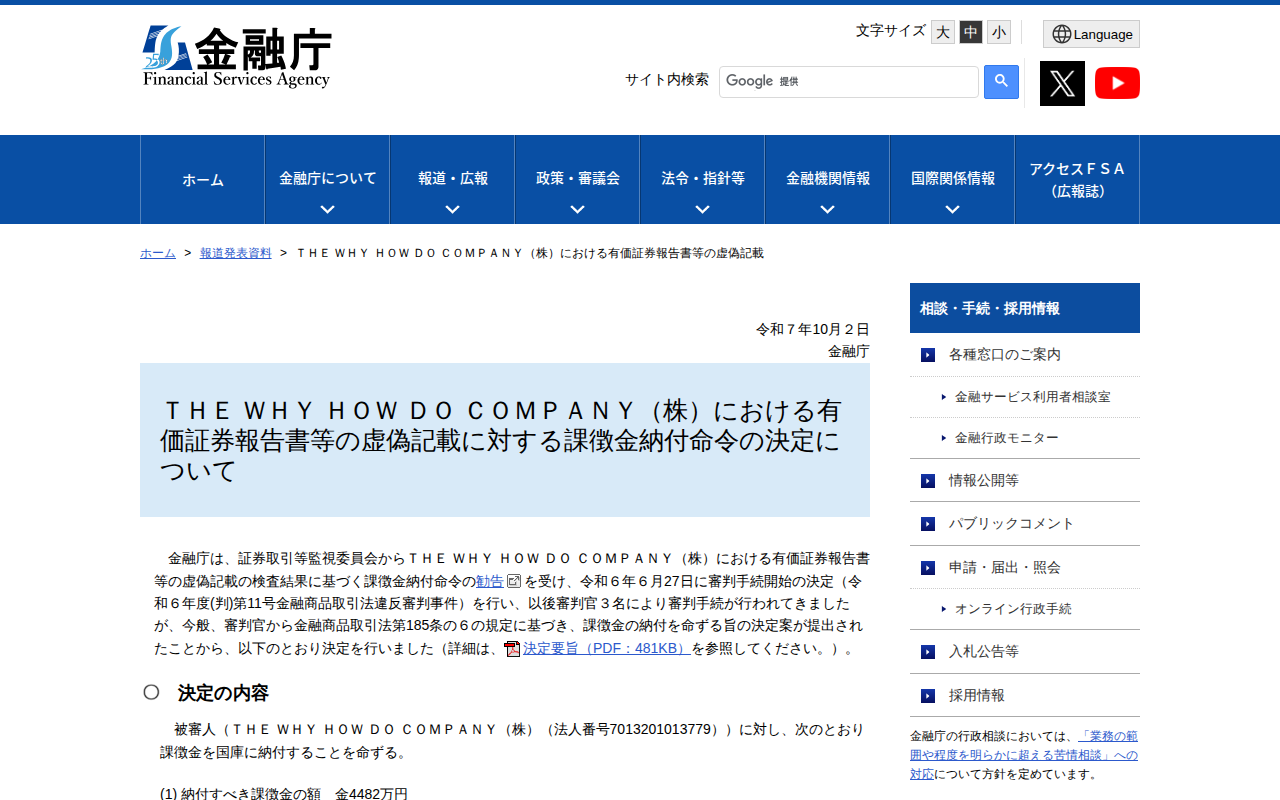 www.fsa.go.jp/news/r7/shouken/20251002-1.htmlのウェブアーカイブ(魚拓)です。 元のページが削除されても、保存されたスクリーンショットとHTMLで内容を確認できます。