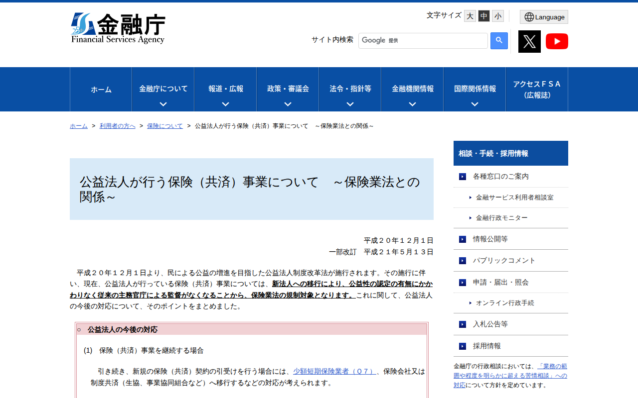 www.fsa.go.jp/ordinary/ins_koueki/index.html