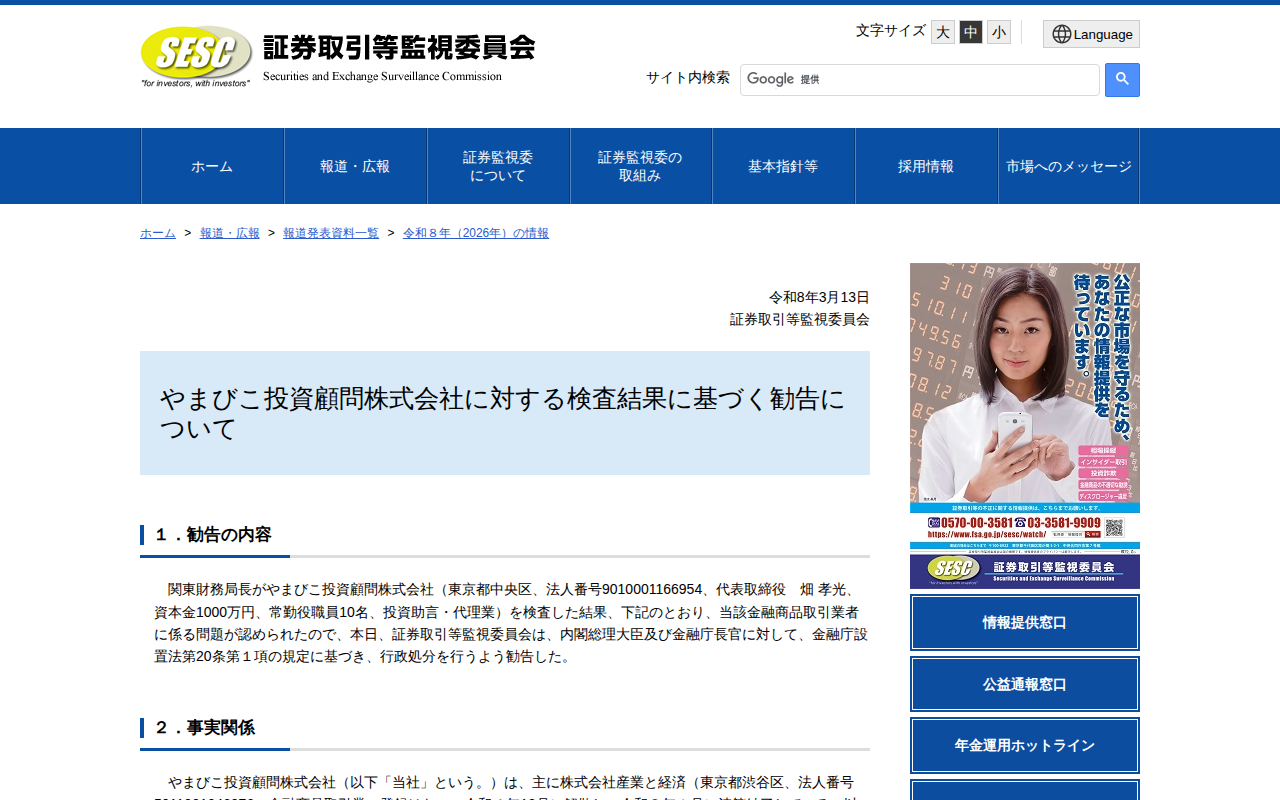 www.fsa.go.jp/sesc/news/c_2026/2026/20260313-1.html