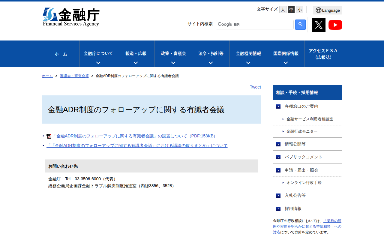 www.fsa.go.jp/singi/adr-followup/index.htmlのウェブアーカイブ(魚拓)です。 元のページが削除されても、保存されたスクリーンショットとHTMLで内容を確認できます。