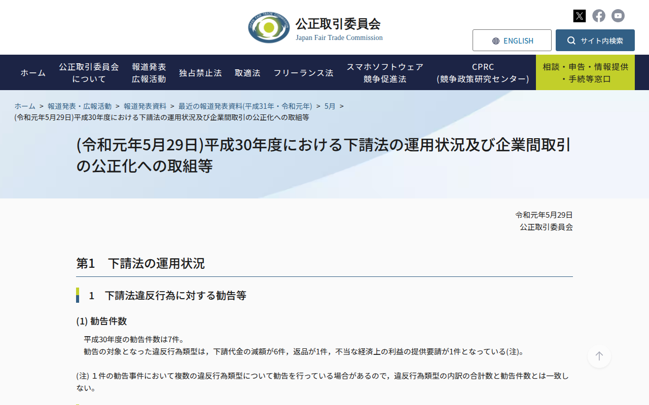 www.jftc.go.jp/houdou/pressrelease/2019/may/190529.htmlのウェブアーカイブ(魚拓)です。 元のページが削除されても、保存されたスクリーンショットとHTMLで内容を確認できます。