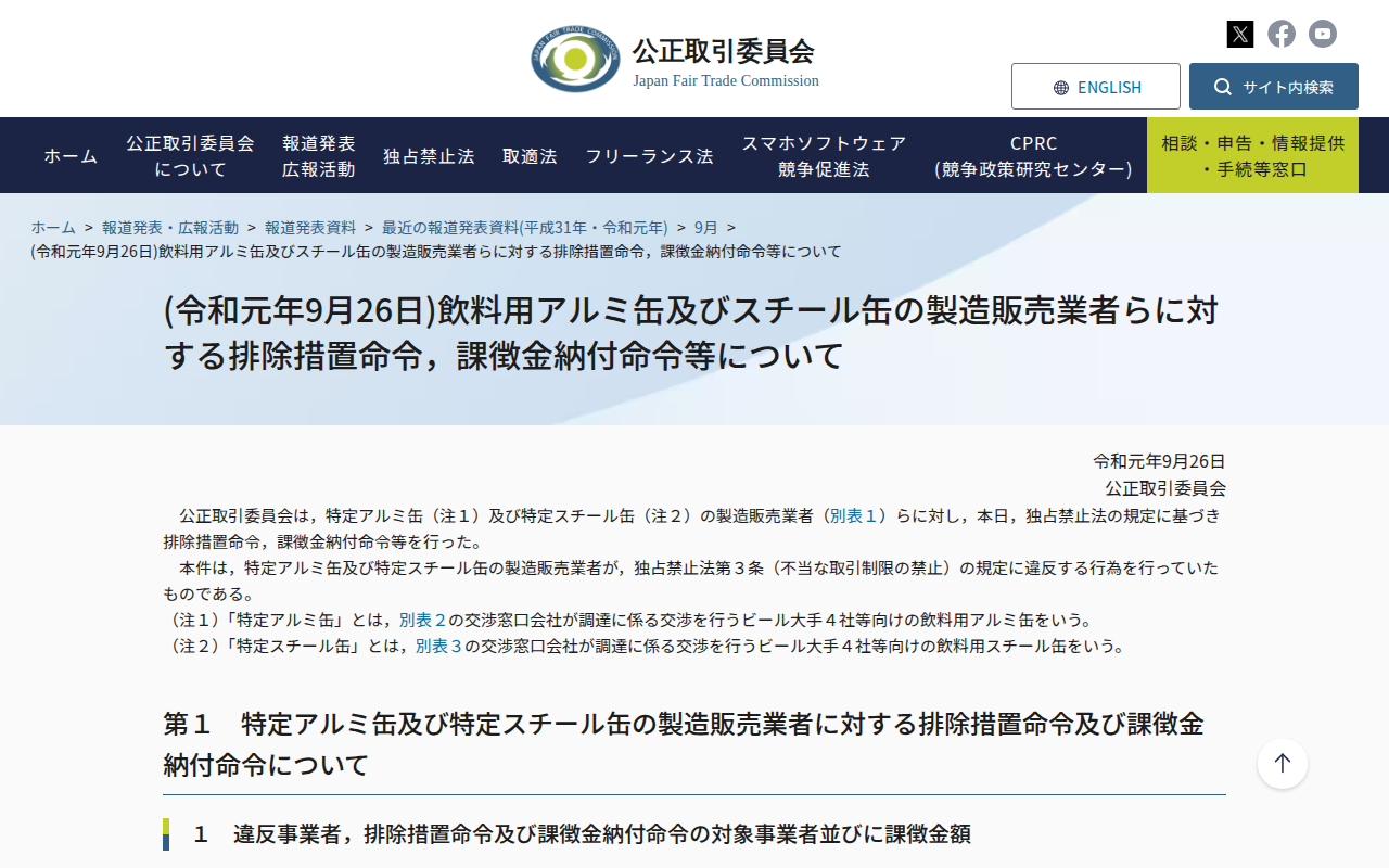 www.jftc.go.jp/houdou/pressrelease/2019/sep/190926inryokan.htmlのウェブアーカイブ(魚拓)です。 元のページが削除されても、保存されたスクリーンショットとHTMLで内容を確認できます。