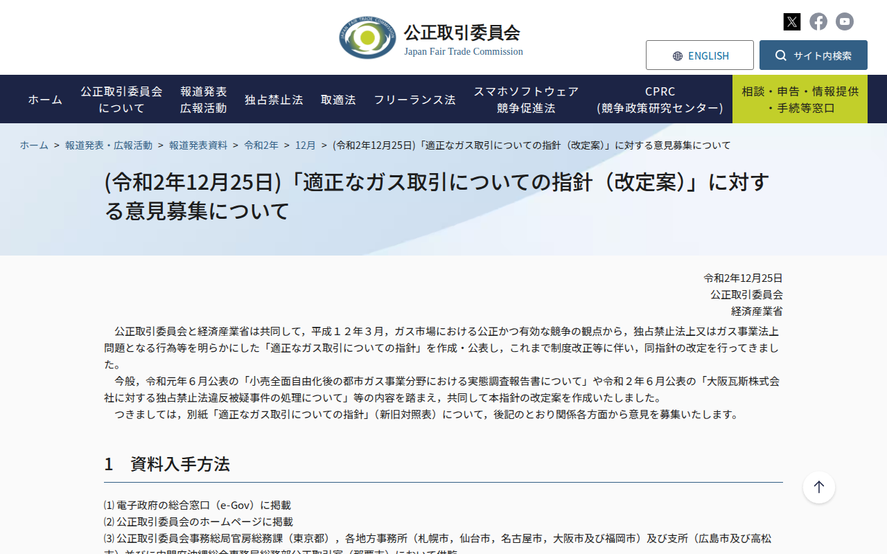 www.jftc.go.jp/houdou/pressrelease/2020/dec/201225_gasgl.htmlのウェブアーカイブ(魚拓)です。 元のページが削除されても、保存されたスクリーンショットとHTMLで内容を確認できます。