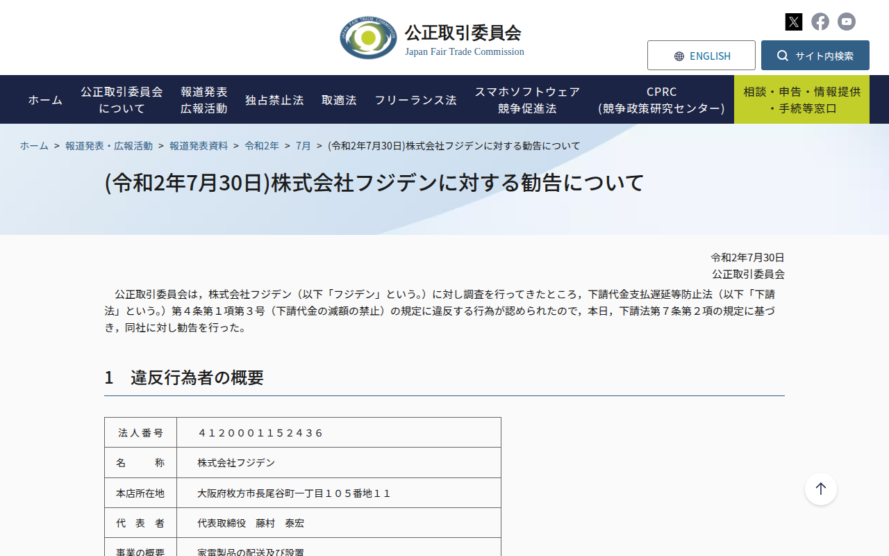 www.jftc.go.jp/houdou/pressrelease/2020/jul/200730.htmlのウェブアーカイブ(魚拓)です。 元のページが削除されても、保存されたスクリーンショットとHTMLで内容を確認できます。