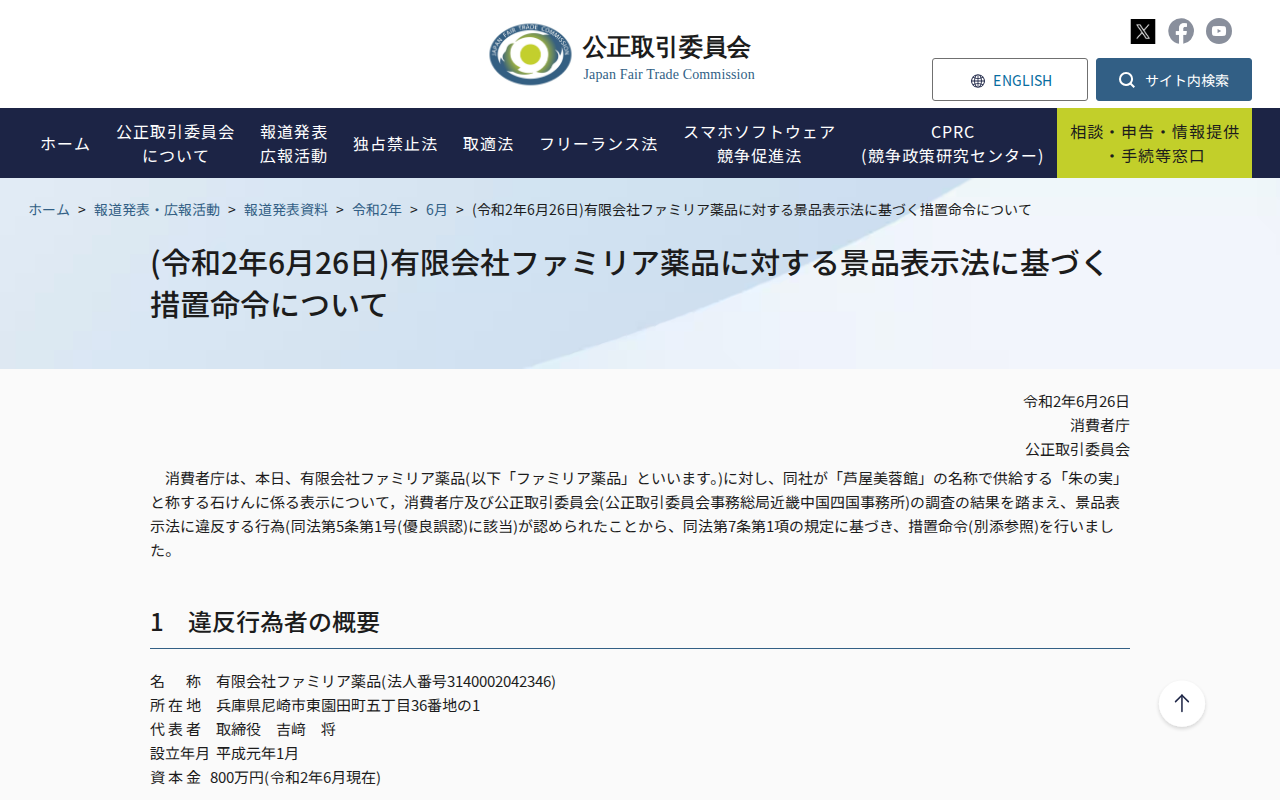 www.jftc.go.jp/houdou/pressrelease/2020/jun/200626_honbun.htmlのウェブアーカイブ(魚拓)です。 元のページが削除されても、保存されたスクリーンショットとHTMLで内容を確認できます。
