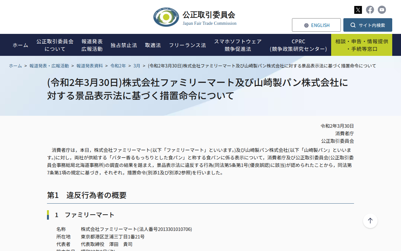 www.jftc.go.jp/houdou/pressrelease/2020/mar/200330.htmlのウェブアーカイブ(魚拓)です。 元のページが削除されても、保存されたスクリーンショットとHTMLで内容を確認できます。