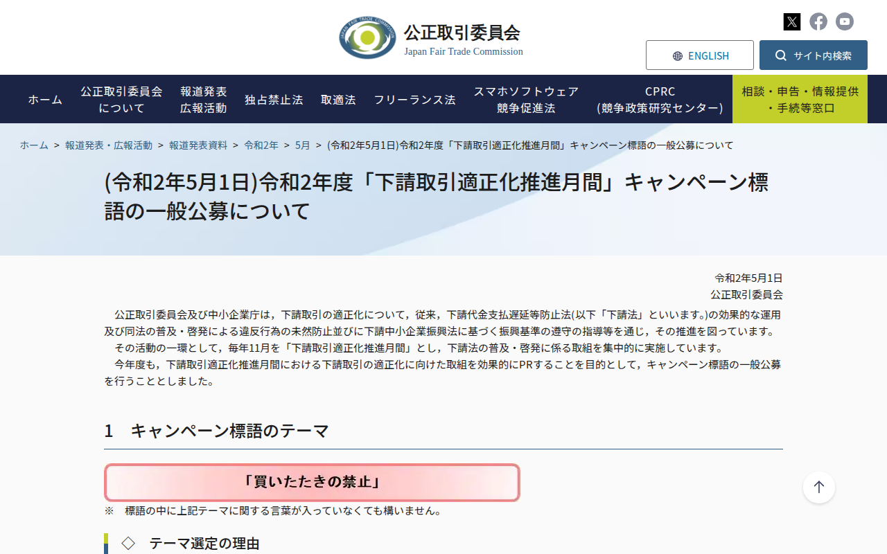 www.jftc.go.jp/houdou/pressrelease/2020/may/200501.htmlのウェブアーカイブ(魚拓)です。 元のページが削除されても、保存されたスクリーンショットとHTMLで内容を確認できます。