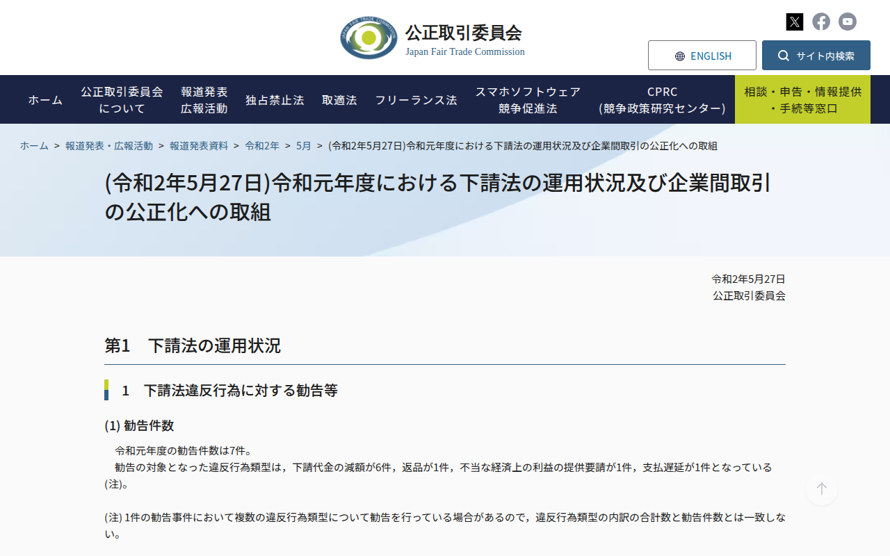 www.jftc.go.jp/houdou/pressrelease/2020/may/200527.htmlのウェブアーカイブ(魚拓)です。 元のページが削除されても、保存されたスクリーンショットとHTMLで内容を確認できます。