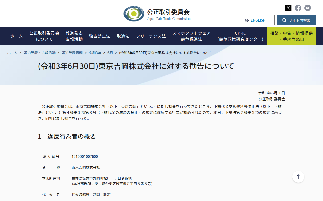 www.jftc.go.jp/houdou/pressrelease/2021/jun/210630_Tokyo-Yoshiaoka.html