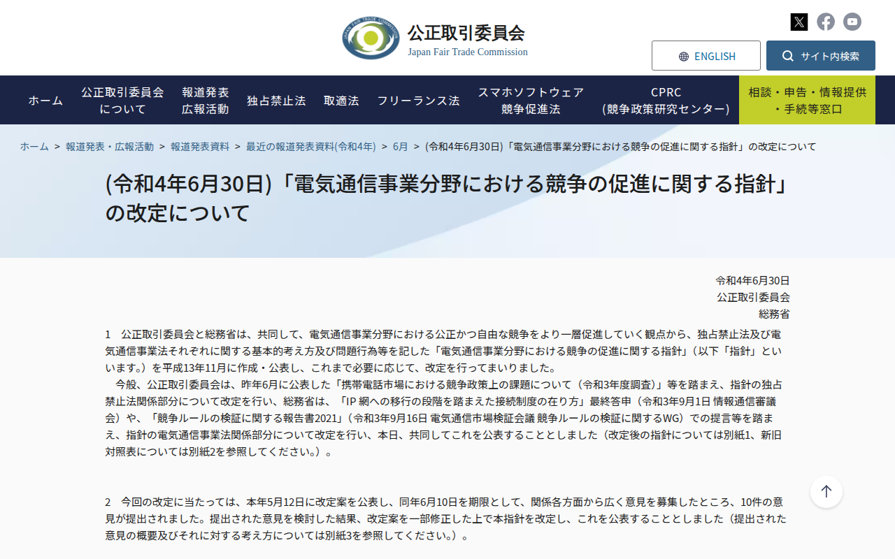 www.jftc.go.jp/houdou/pressrelease/2022/jun/220630denkitsushin.html