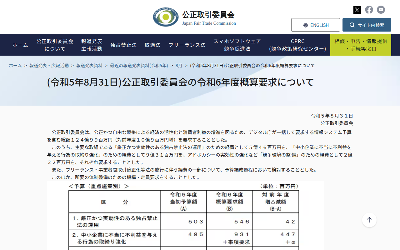 www.jftc.go.jp/houdou/pressrelease/2023/aug/230831yosanyoukyuu.html