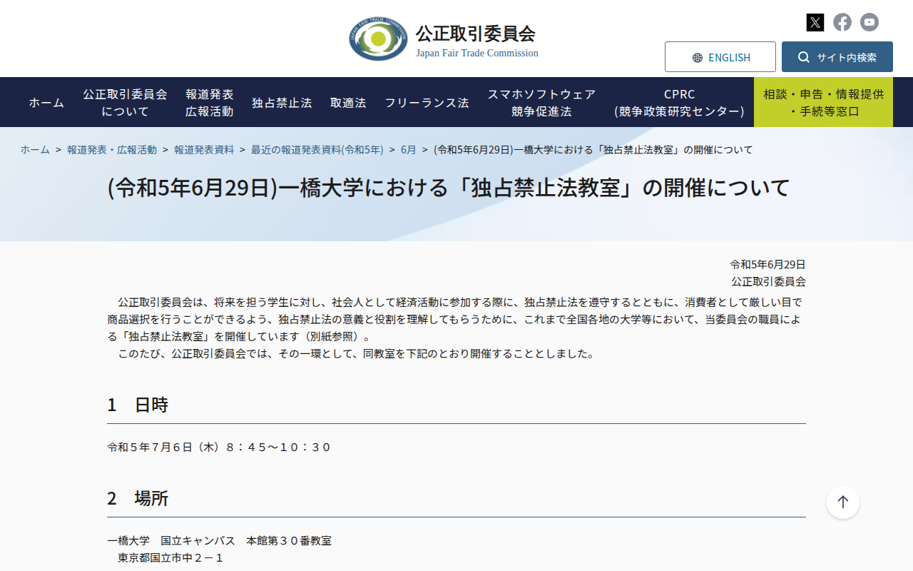 www.jftc.go.jp/houdou/pressrelease/2023/jun/230629hitotsubashiuniv.html