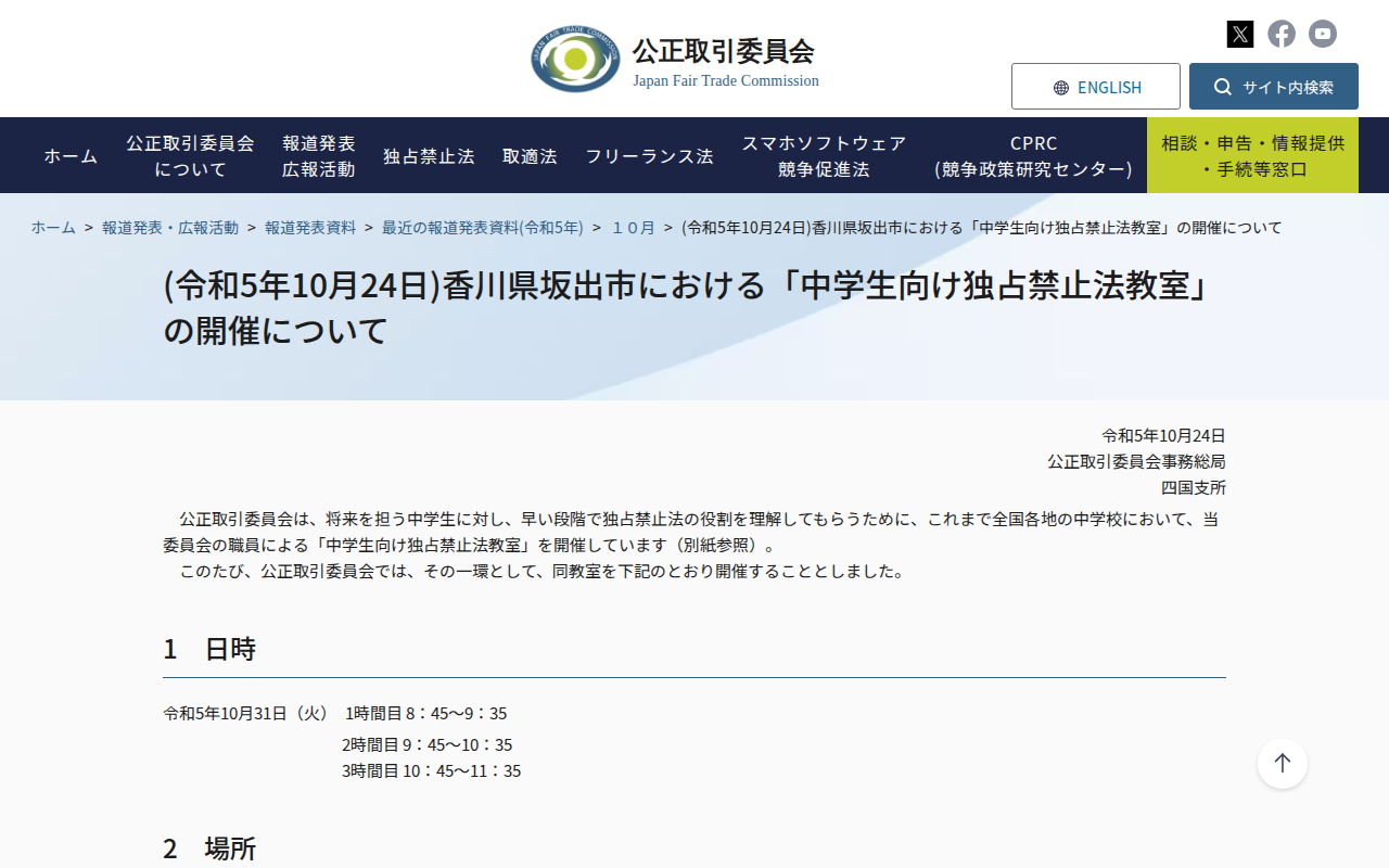 www.jftc.go.jp/houdou/pressrelease/2023/oct/shikoku/231024_sakaidehuzoku.htmlのウェブアーカイブ(魚拓)です。 元のページが削除されても、保存されたスクリーンショットとHTMLで内容を確認できます。