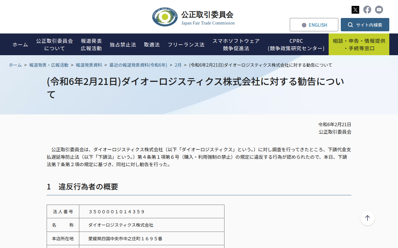 www.jftc.go.jp/houdou/pressrelease/2024/feb/240221_shikokushitauke.htmlのウェブアーカイブ(魚拓)です。 元のページが削除されても、保存されたスクリーンショットとHTMLで内容を確認できます。