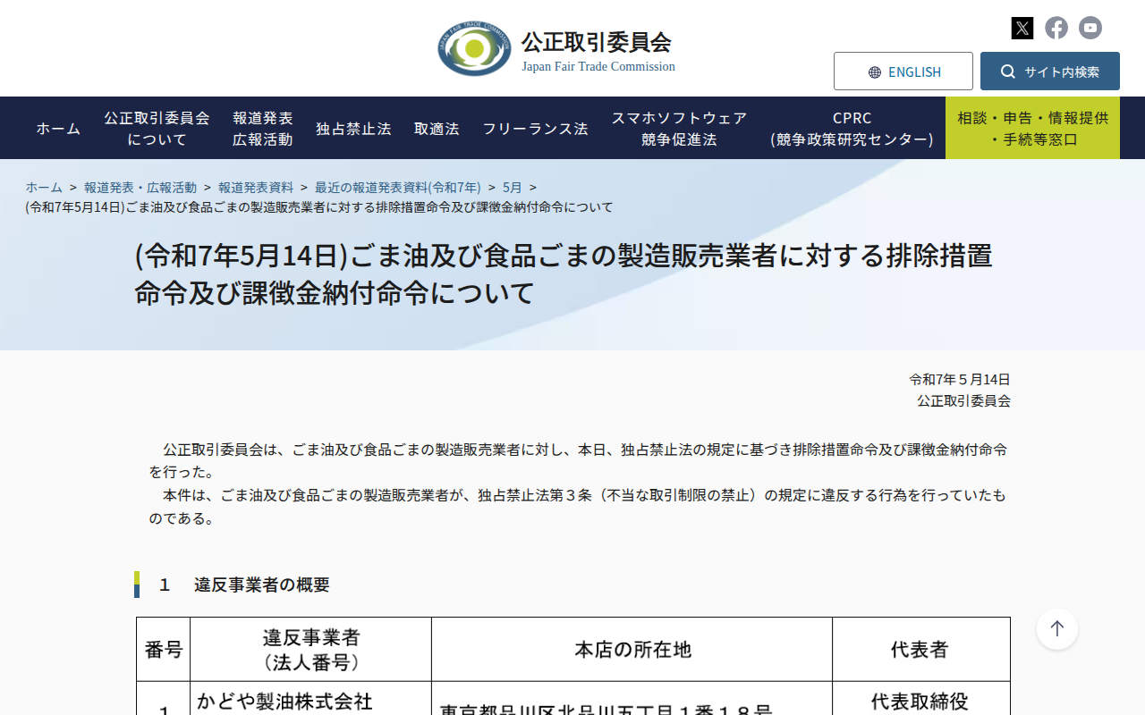 www.jftc.go.jp/houdou/pressrelease/2025/may/250514_sanjo.htmlのウェブアーカイブ(魚拓)です。 元のページが削除されても、保存されたスクリーンショットとHTMLで内容を確認できます。