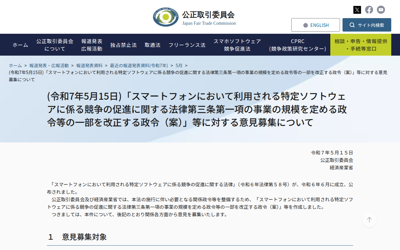 www.jftc.go.jp/houdou/pressrelease/2025/may/250515_publiccomment.html