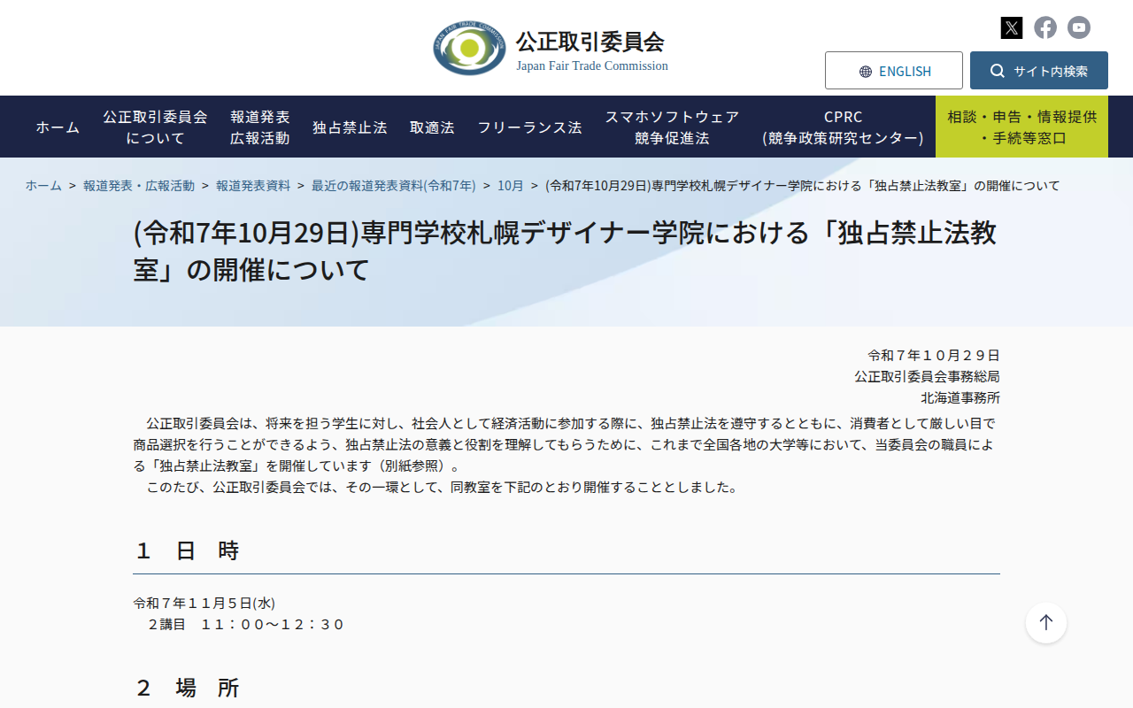 www.jftc.go.jp/houdou/pressrelease/2025/oct/251029_sapporodesignergakuin.html