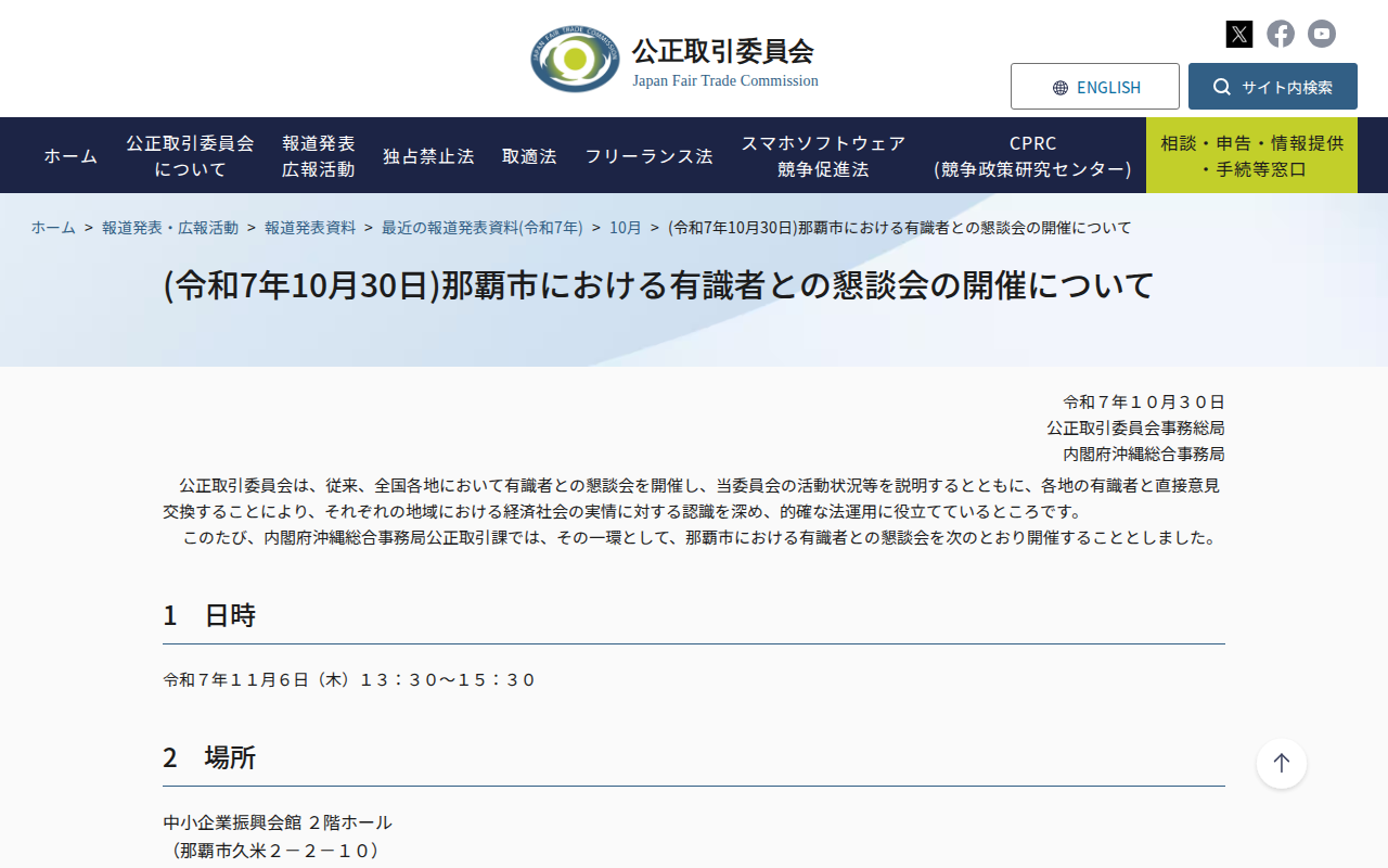 www.jftc.go.jp/houdou/pressrelease/2025/oct/251030_okinawa_minimini.htmlのウェブアーカイブ(魚拓)です。 元のページが削除されても、保存されたスクリーンショットとHTMLで内容を確認できます。