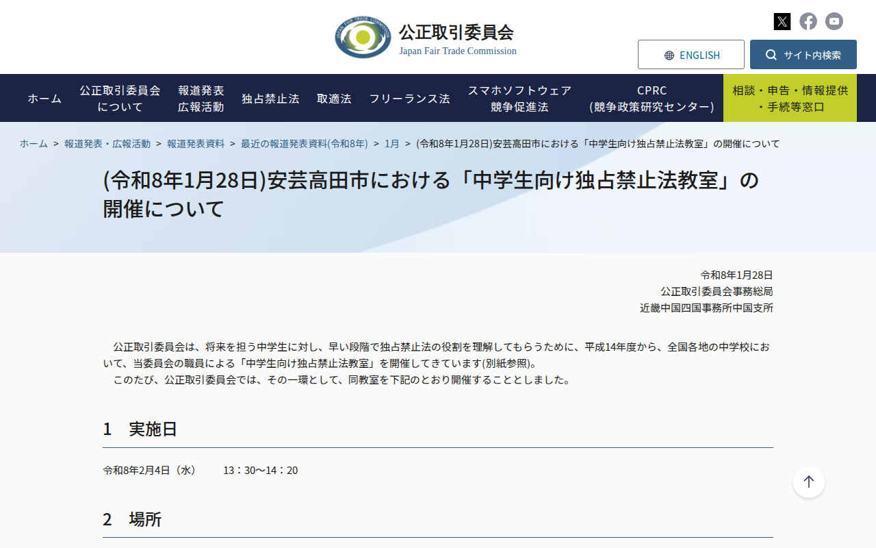 www.jftc.go.jp/houdou/pressrelease/2026/jan/260128_chugoku_kyositysu.midori.htmlのウェブアーカイブ(魚拓)です。 元のページが削除されても、保存されたスクリーンショットとHTMLで内容を確認できます。