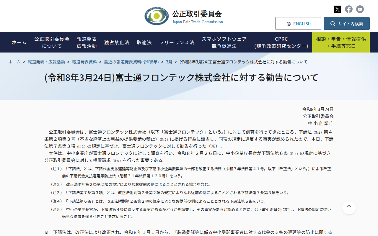 www.jftc.go.jp/houdou/pressrelease/2026/mar/260324_fujitsufrontech.html