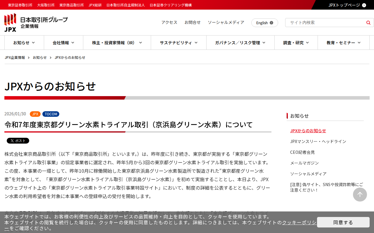 www.jpx.co.jp/corporate/news/news-releases/0060/20260130-01.htmlのウェブアーカイブ(魚拓)です。 元のページが削除されても、保存されたスクリーンショットとHTMLで内容を確認できます。