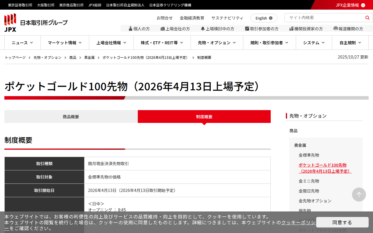 www.jpx.co.jp/derivatives/products/precious-metals/gold-cash-settled-futures/01.htmlのウェブアーカイブ(魚拓)です。 元のページが削除されても、保存されたスクリーンショットとHTMLで内容を確認できます。