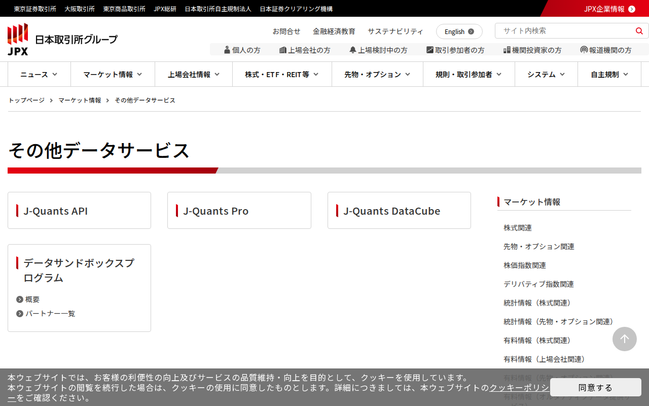 www.jpx.co.jp/markets/other-data-services/index.htmlのウェブアーカイブ(魚拓)です。 元のページが削除されても、保存されたスクリーンショットとHTMLで内容を確認できます。
