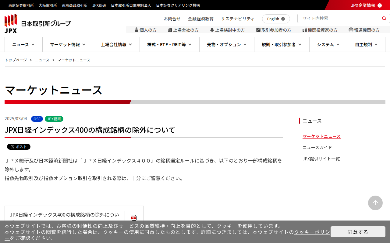 www.jpx.co.jp/news/6030/20250304-01.htmlのウェブアーカイブ(魚拓)です。 元のページが削除されても、保存されたスクリーンショットとHTMLで内容を確認できます。