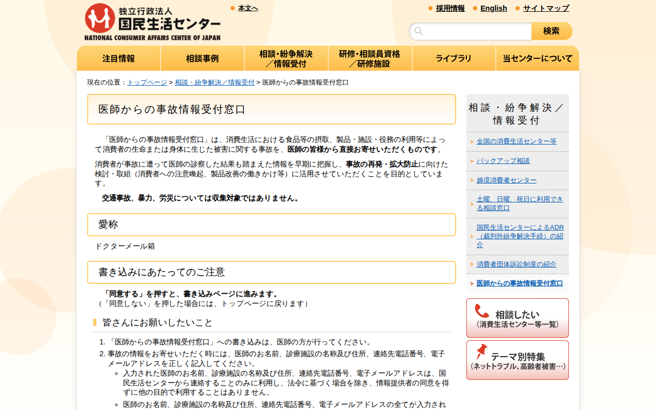 www.kokusen.go.jp/jiko_uketuke/index.html