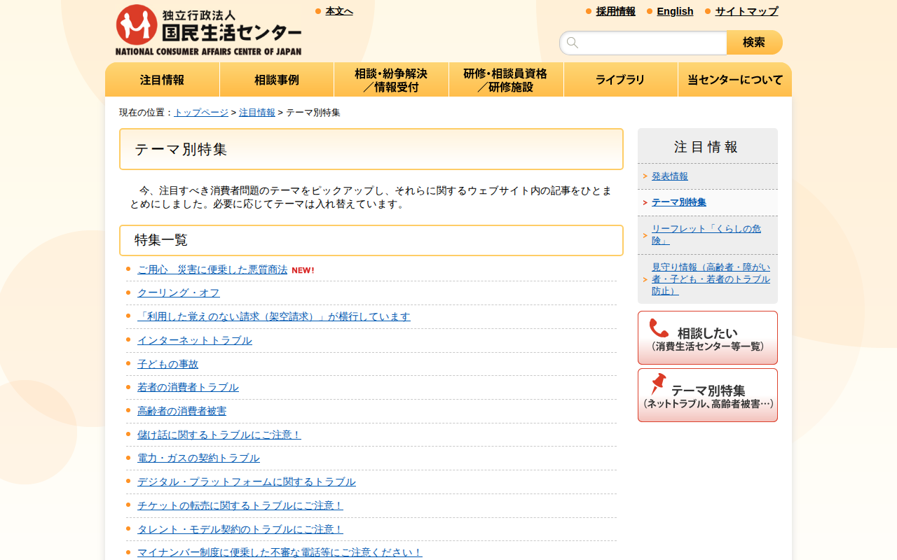 www.kokusen.go.jp/soudan_now/soudan_now.htmlのウェブアーカイブ(魚拓)です。 元のページが削除されても、保存されたスクリーンショットとHTMLで内容を確認できます。