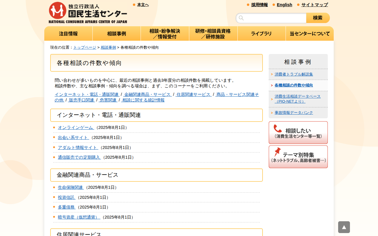 www.kokusen.go.jp/soudan_topics/index.html