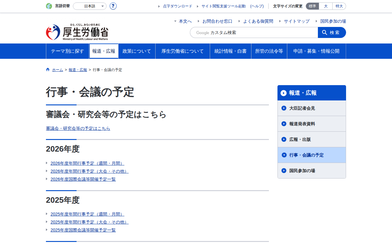 www.mhlw.go.jp/houdou_kouhou/gyouji_kaigi/index.html