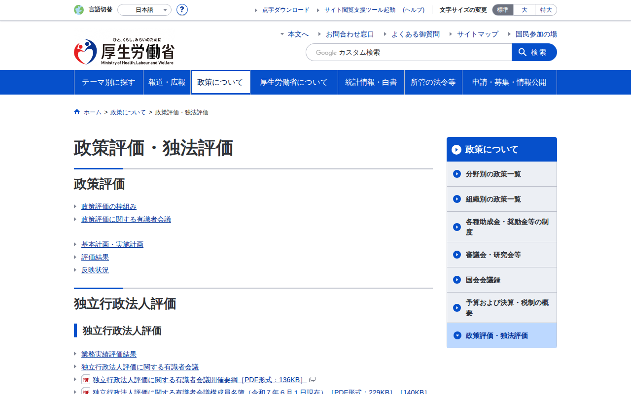 www.mhlw.go.jp/seisakunitsuite/seisakuhyouka/index.html