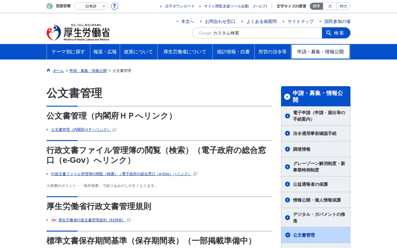 www.mhlw.go.jp/shinsei_boshu/gyouseibunsho/index.html