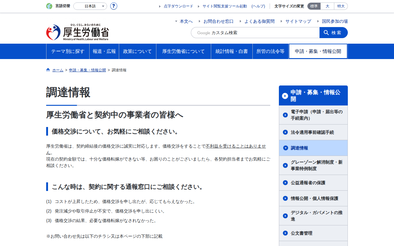 www.mhlw.go.jp/sinsei/chotatu/index.html