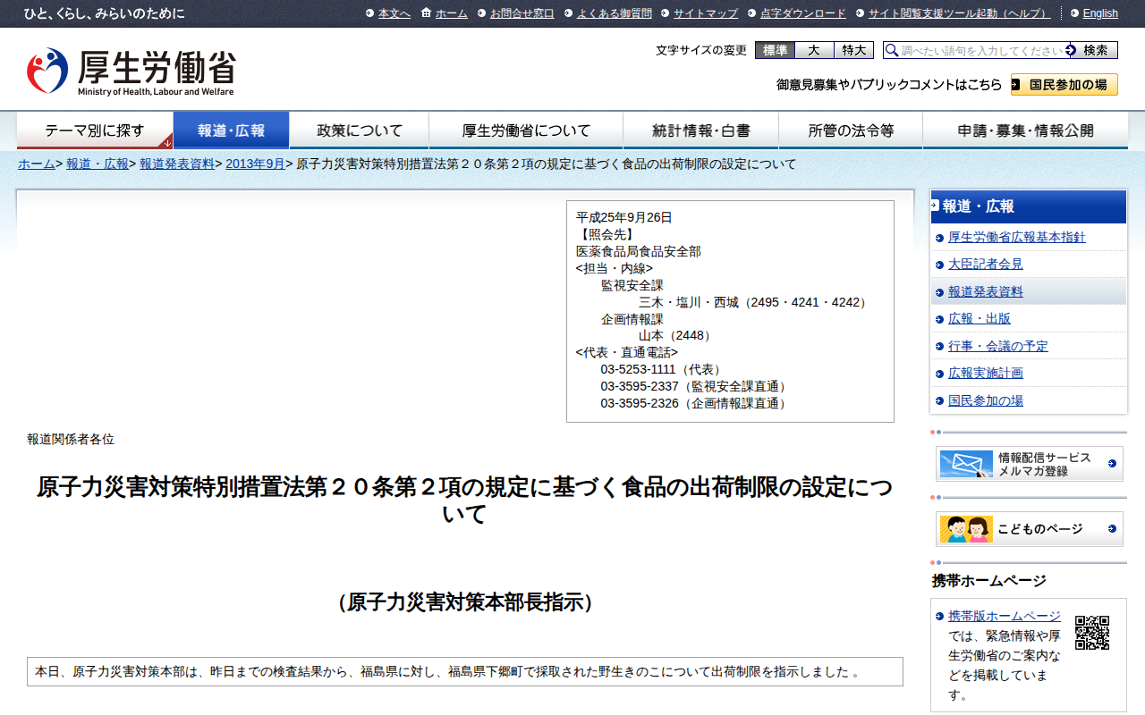 www.mhlw.go.jp/stf/houdou/0000024233.htmlのウェブアーカイブ(魚拓)です。 元のページが削除されても、保存されたスクリーンショットとHTMLで内容を確認できます。