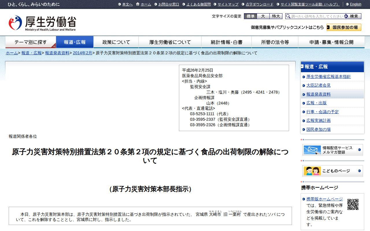 www.mhlw.go.jp/stf/houdou/0000038168.htmlのウェブアーカイブ(魚拓)です。 元のページが削除されても、保存されたスクリーンショットとHTMLで内容を確認できます。