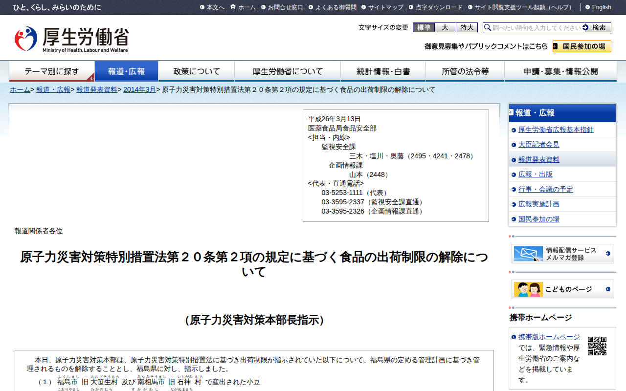 www.mhlw.go.jp/stf/houdou/0000040210.htmlのウェブアーカイブ(魚拓)です。 元のページが削除されても、保存されたスクリーンショットとHTMLで内容を確認できます。