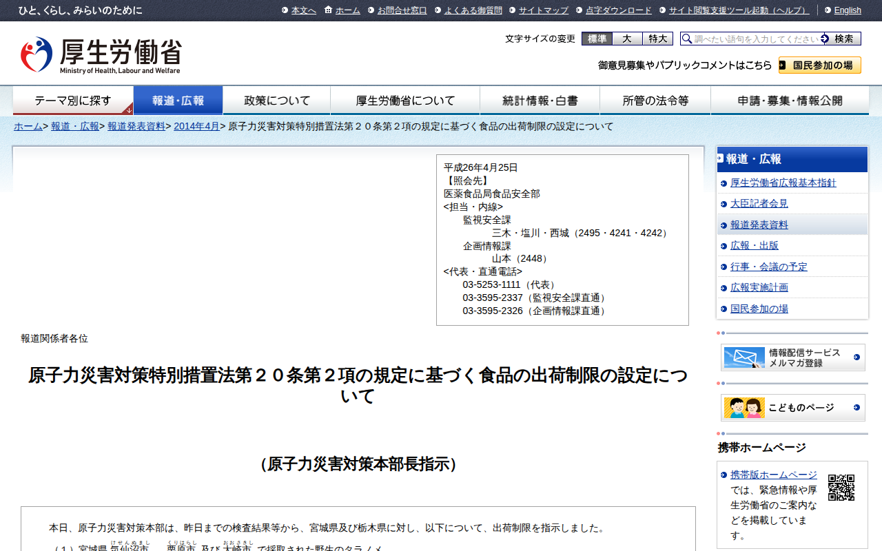 www.mhlw.go.jp/stf/houdou/0000044828.htmlのウェブアーカイブ(魚拓)です。 元のページが削除されても、保存されたスクリーンショットとHTMLで内容を確認できます。