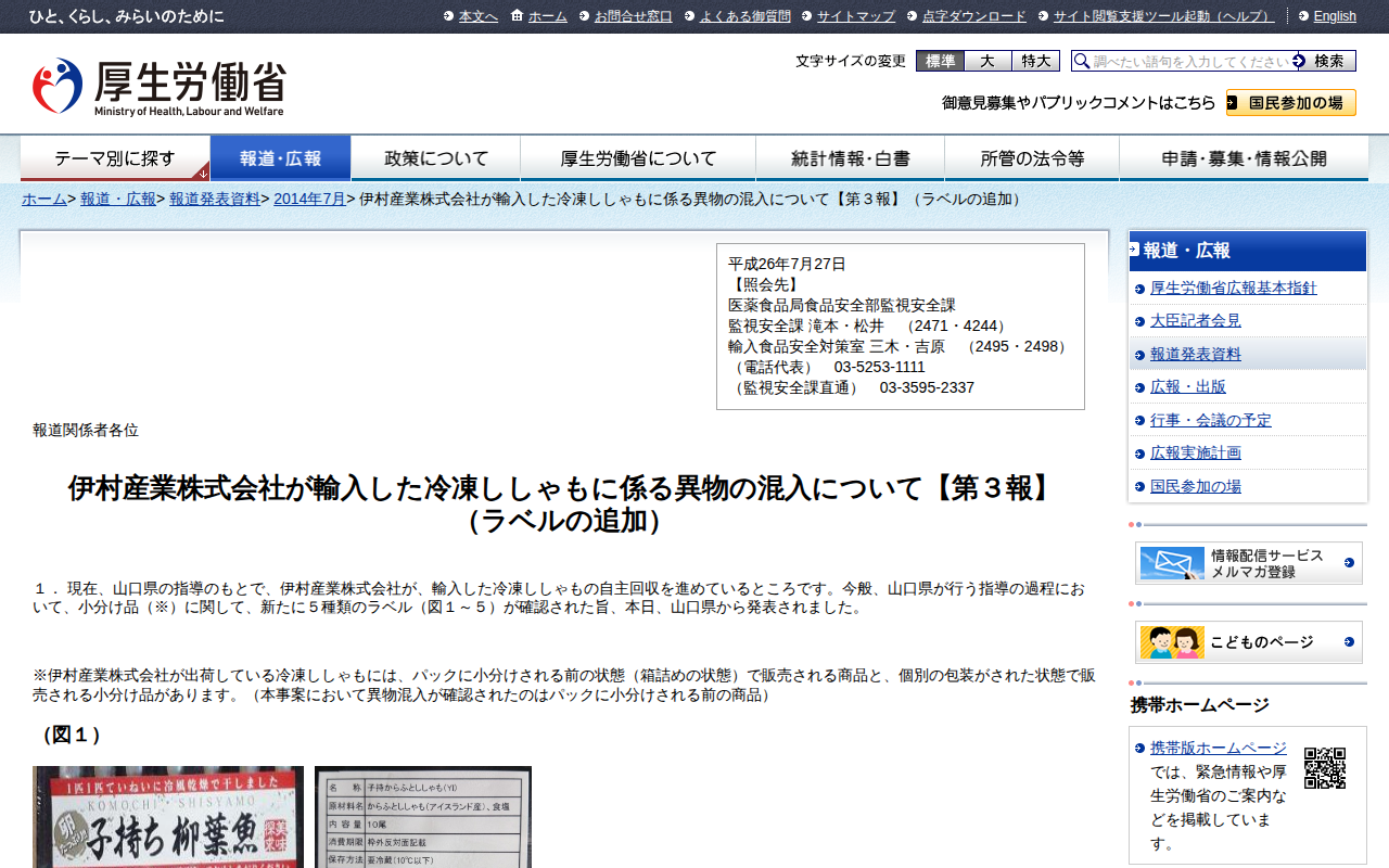 www.mhlw.go.jp/stf/houdou/0000052339.htmlのウェブアーカイブ(魚拓)です。 元のページが削除されても、保存されたスクリーンショットとHTMLで内容を確認できます。
