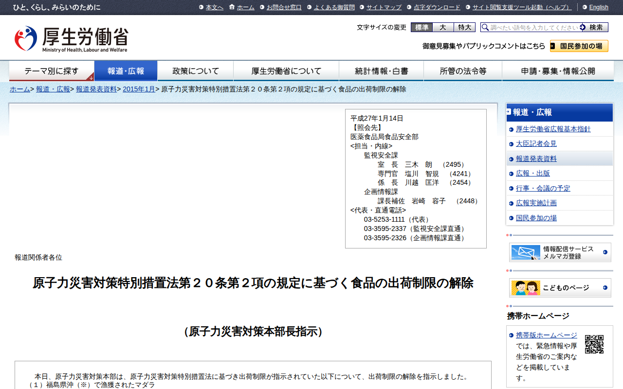 www.mhlw.go.jp/stf/houdou/0000071069.htmlのウェブアーカイブ(魚拓)です。 元のページが削除されても、保存されたスクリーンショットとHTMLで内容を確認できます。