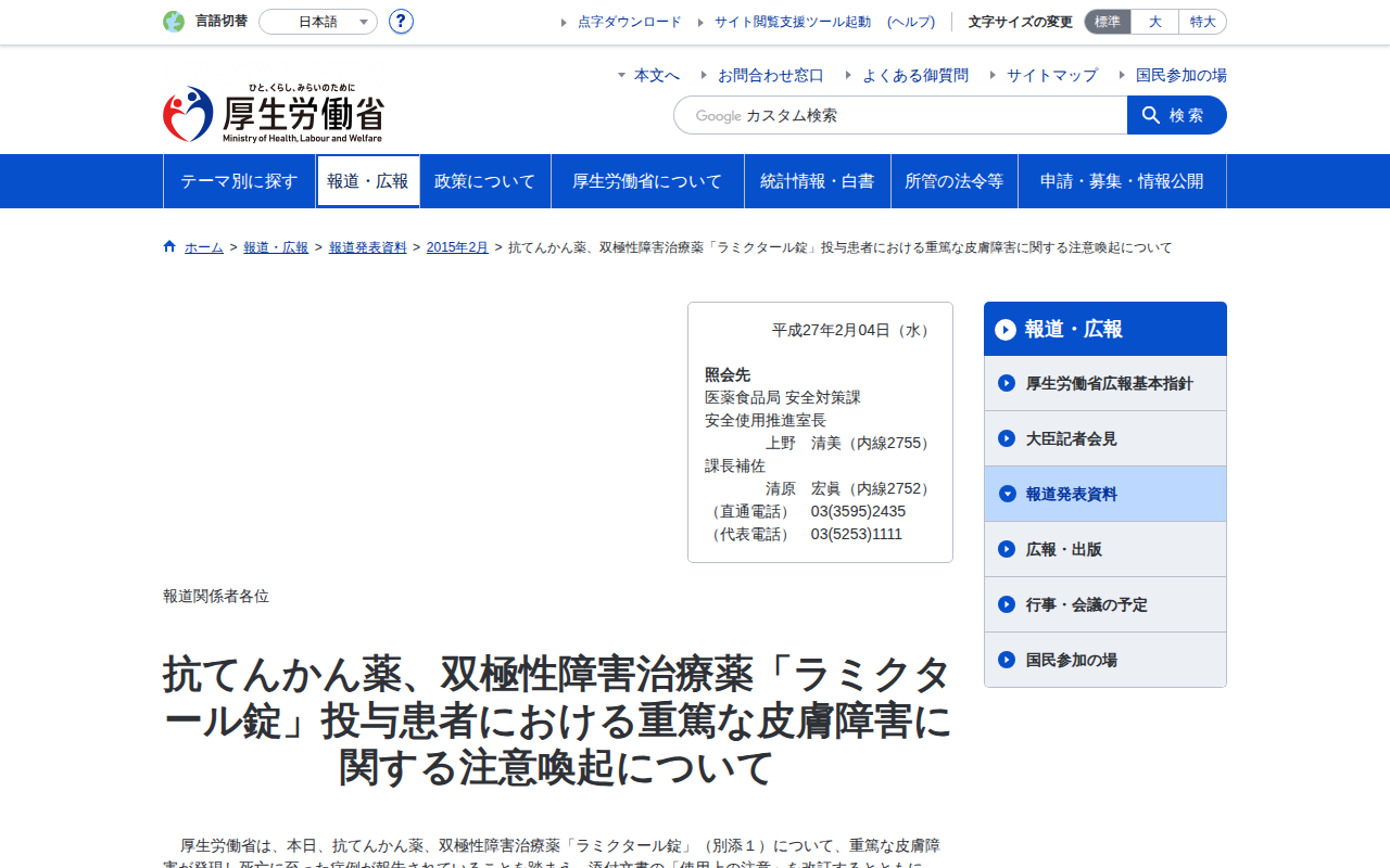 www.mhlw.go.jp/stf/houdou/0000073061.htmlのウェブアーカイブ(魚拓)です。 元のページが削除されても、保存されたスクリーンショットとHTMLで内容を確認できます。