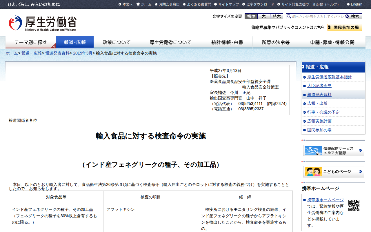 www.mhlw.go.jp/stf/houdou/0000077138.htmlのウェブアーカイブ(魚拓)です。 元のページが削除されても、保存されたスクリーンショットとHTMLで内容を確認できます。