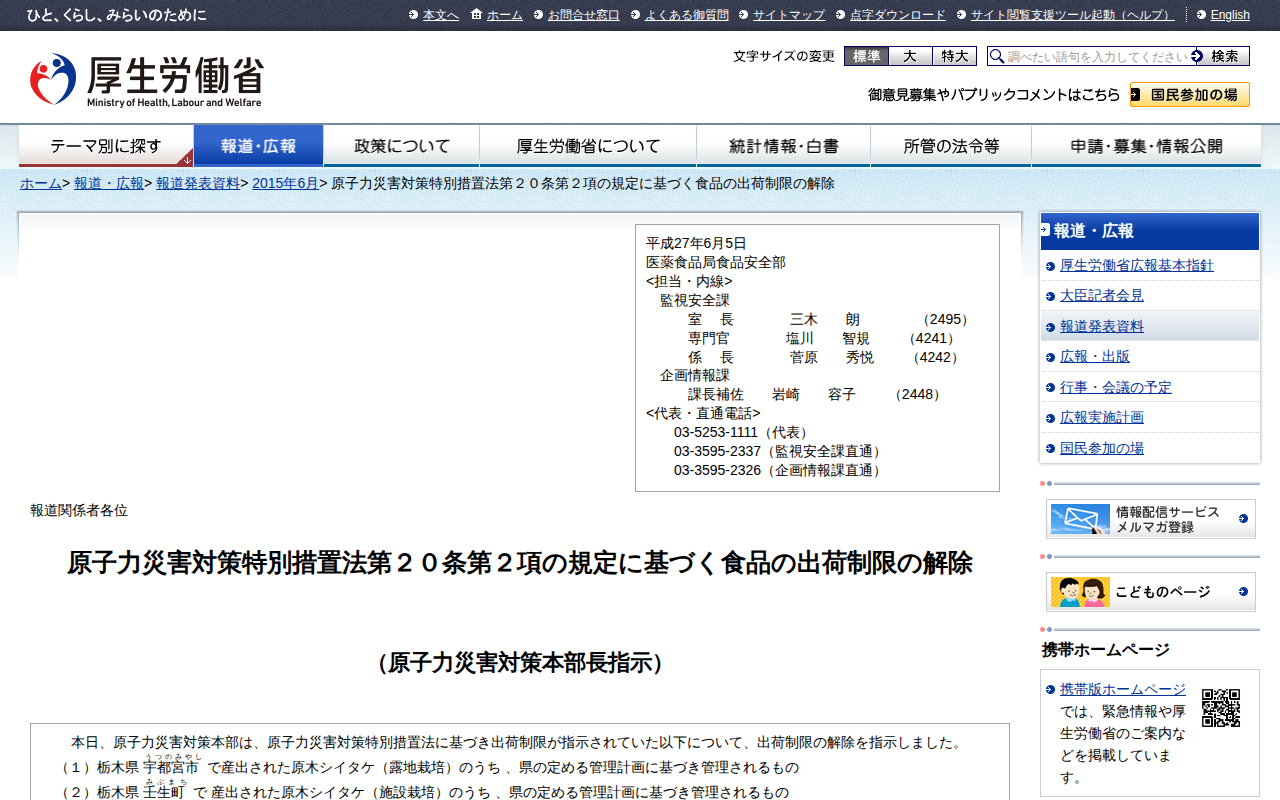 www.mhlw.go.jp/stf/houdou/0000088222.htmlのウェブアーカイブ(魚拓)です。 元のページが削除されても、保存されたスクリーンショットとHTMLで内容を確認できます。