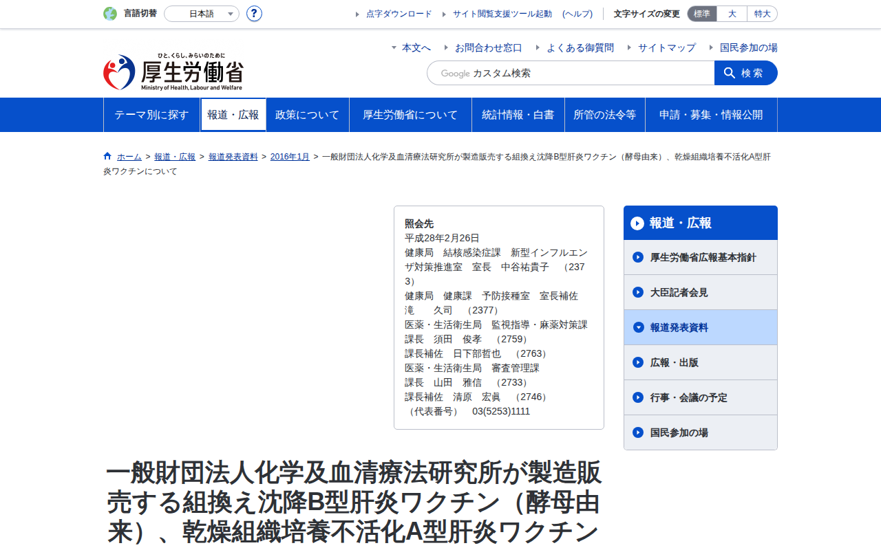 www.mhlw.go.jp/stf/houdou/0000110599.htmlのウェブアーカイブ(魚拓)です。 元のページが削除されても、保存されたスクリーンショットとHTMLで内容を確認できます。